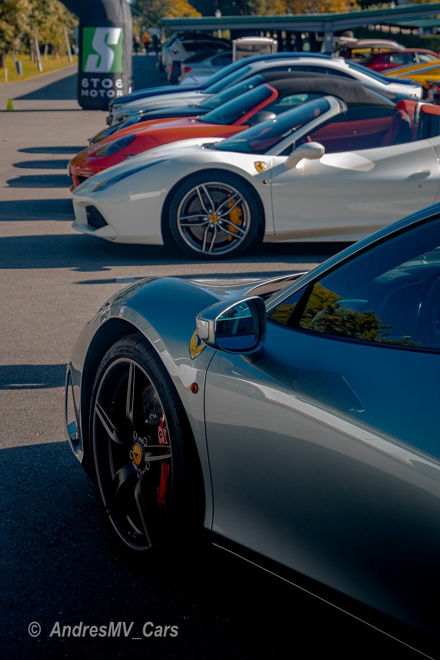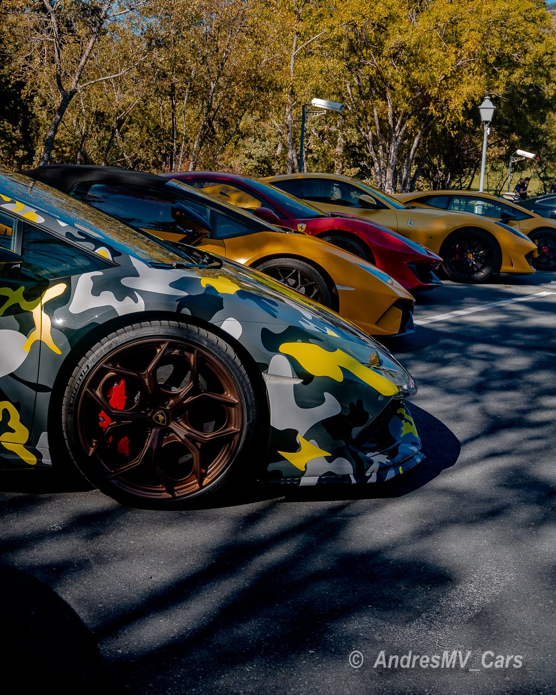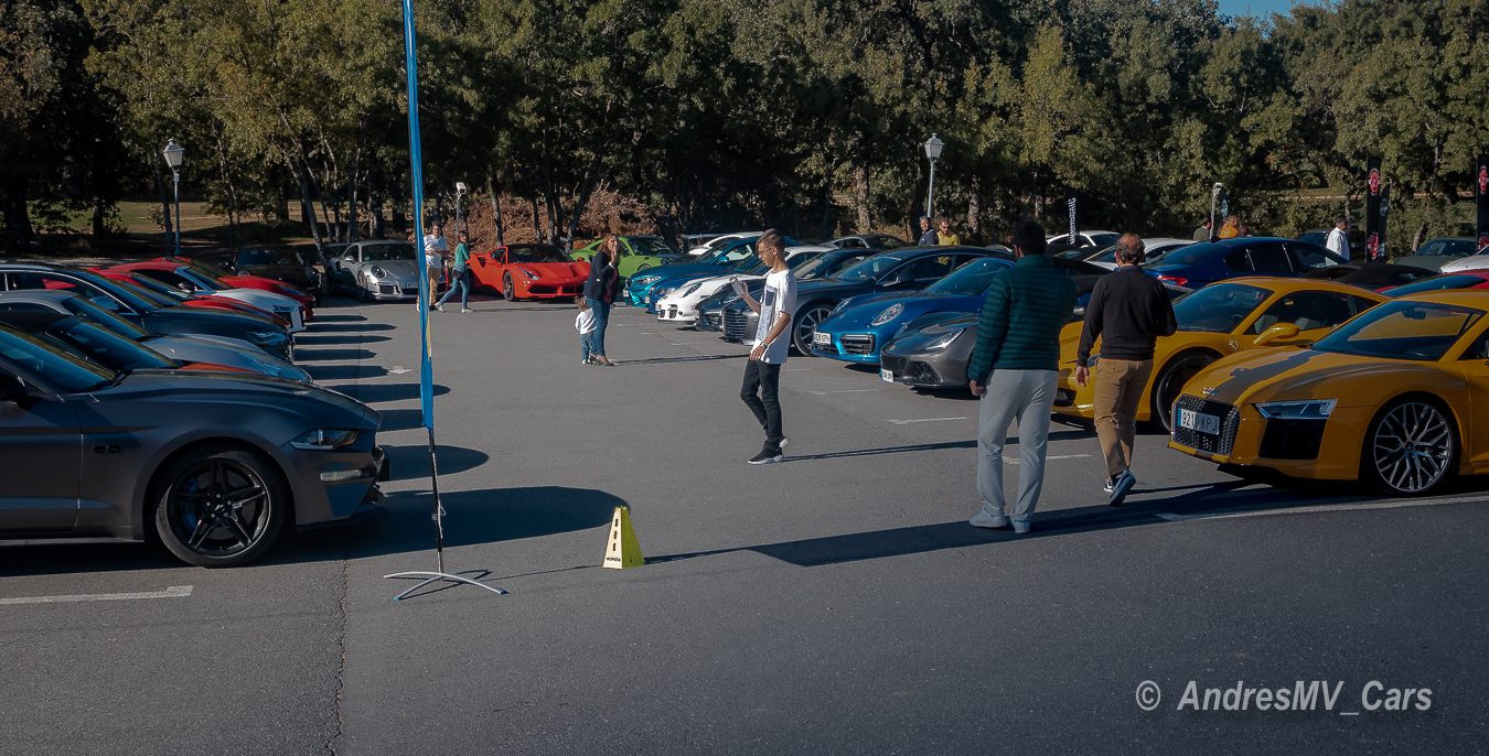 En el parking había de todo, desde un BMW M4 hasta un Ferrari 812 Superfast, Lamborghini Huracán Performante, Mclaren 720S, Ferrari 488 Pista, Porsche GT3 RS, Ferrari Portofino, varios Audi R8 de distintas generaciones, Porsches Carrera, Mercedes E y C 43, Porsche GT3, Lamborghini Gallardo, Porsche 718 Boxster T, BMW M5, Ferrari 458 Speciale, BMW M2 Competition, Chevrolet Camaro y muchos más.