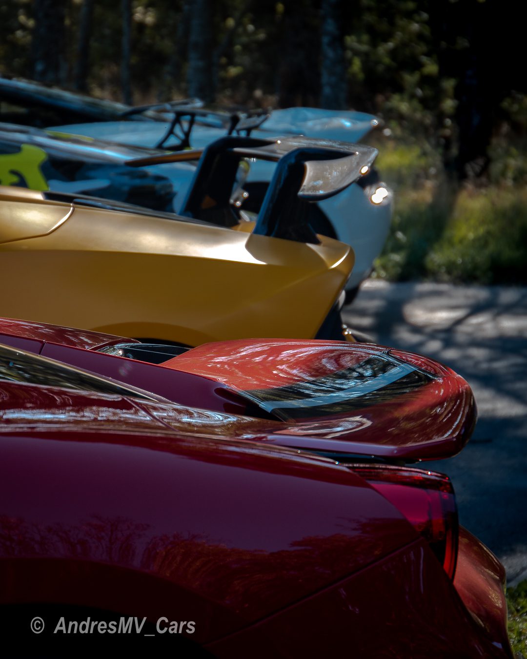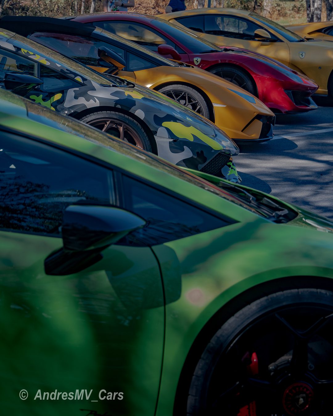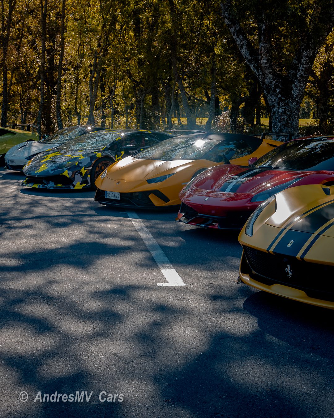 En el parking había de todo, desde un BMW M4 hasta un Ferrari 812 Superfast, Lamborghini Huracán Performante, Mclaren 720S, Ferrari 488 Pista, Porsche GT3 RS, Ferrari Portofino, varios Audi R8 de distintas generaciones, Porsches Carrera, Mercedes E y C 43, Porsche GT3, Lamborghini Gallardo, Porsche 718 Boxster T, BMW M5, Ferrari 458 Speciale, BMW M2 Competition, Chevrolet Camaro y muchos más.